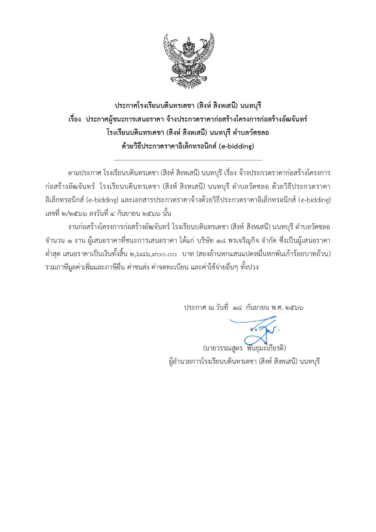ประกาศผู้ชนะการเสนอราคา จ้างประกวดราคาก่อสร้างโครงการก่อสร้างอัฒจันทร์