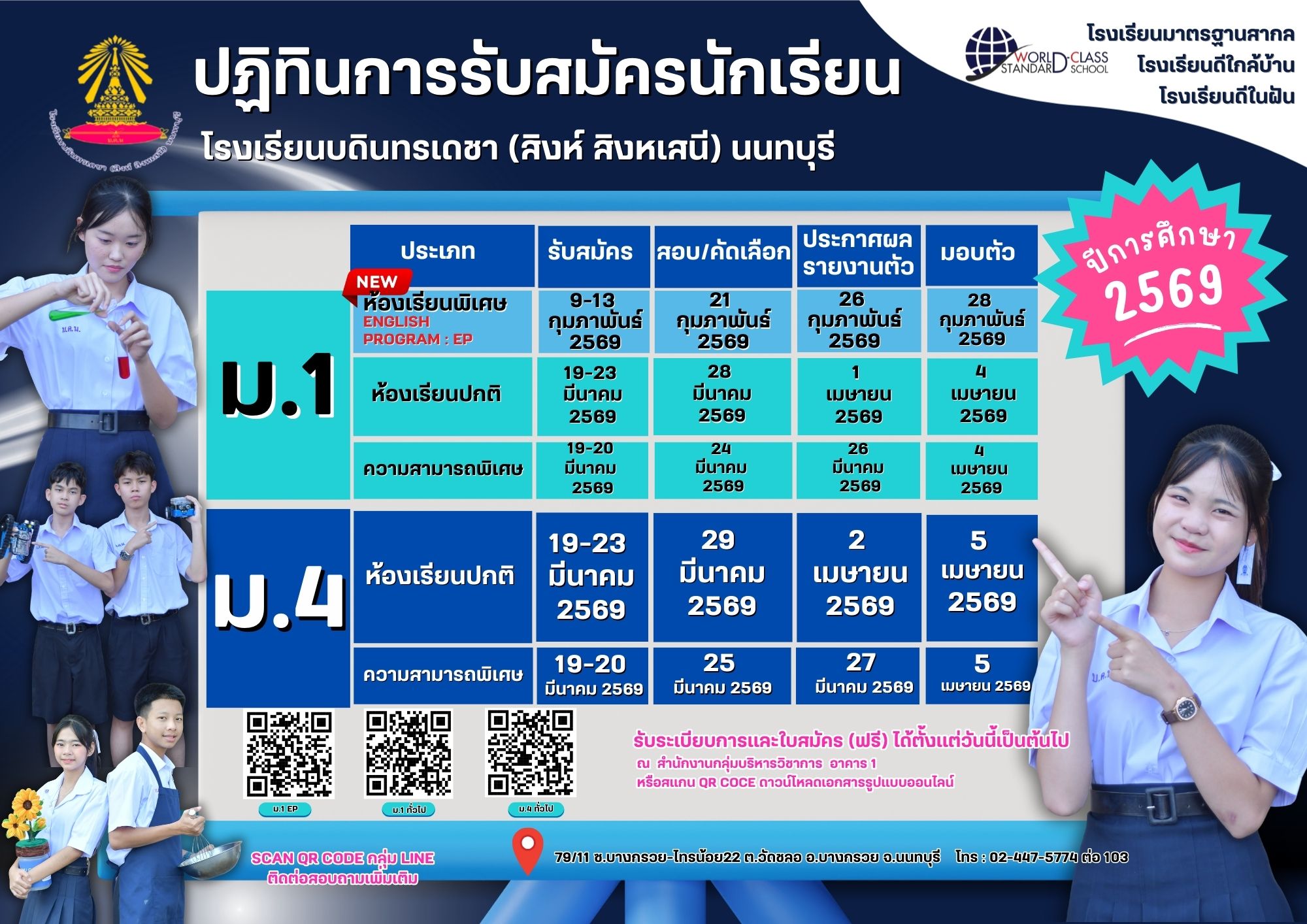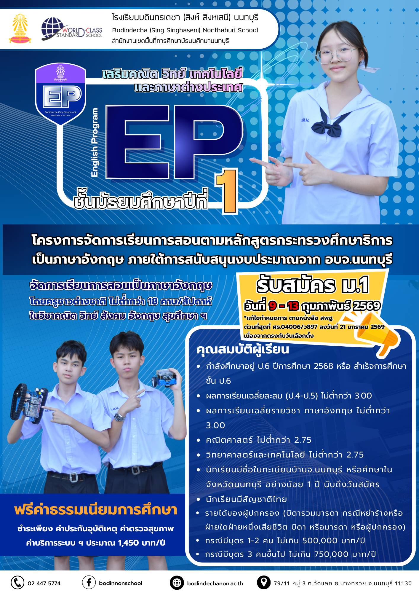 การรับนักเรียนชั้นมัธยมศึกษาปีที่ ๑ (ห้องเรียนพิเศษ) ปีการศึกษา ๒๕๖๙ ห้องเรียนพิเศษ EP