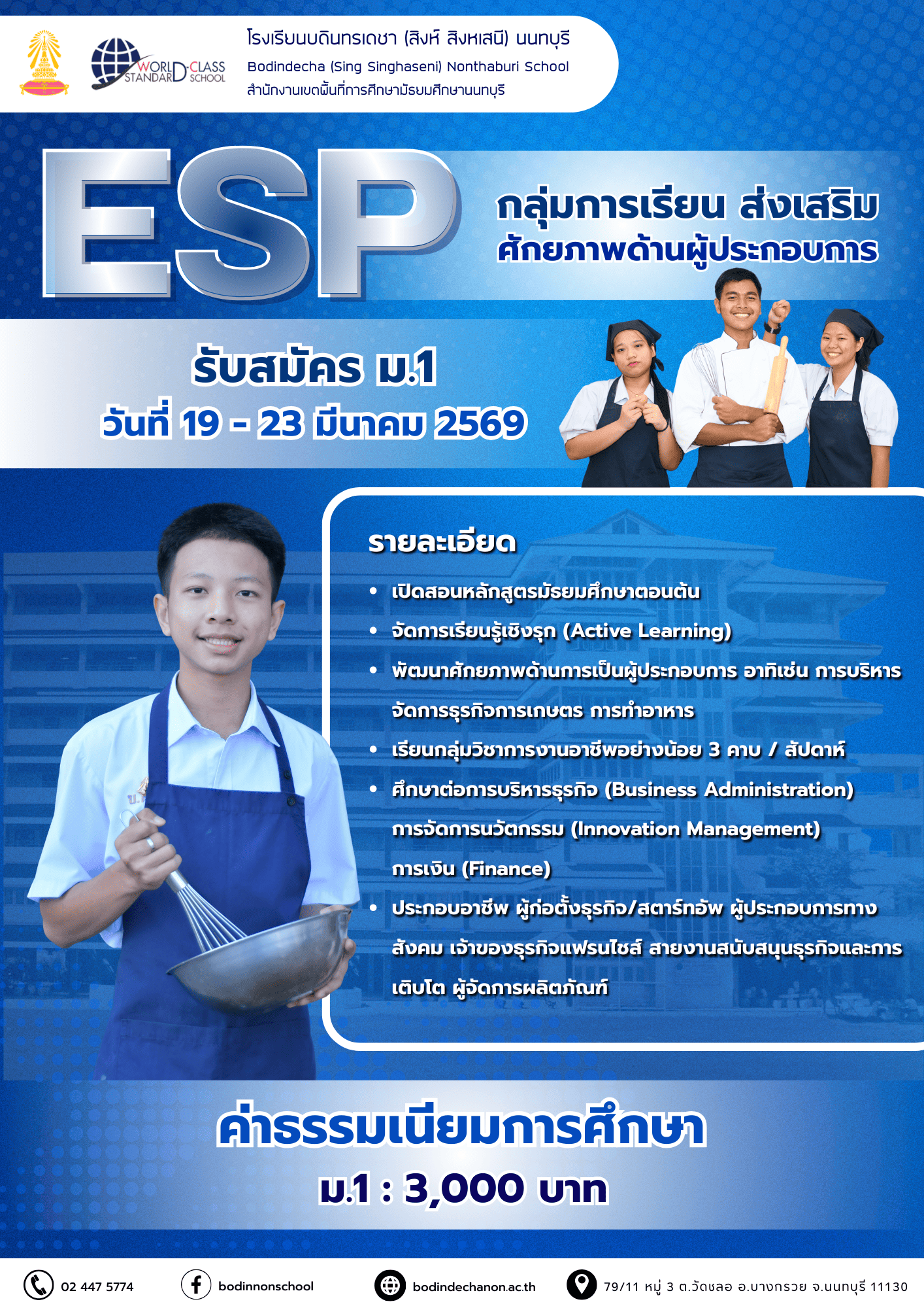 การรับนักเรียนขั้นมัธยมศึกษาปีที่ ๑ ปีการศึกษา ๒๕๖๙ (ประเภททั่วไป และความสามารถพิเศษ)